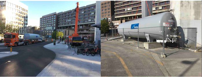 L’installation de la deuxième citerne de 24 000 litres d’oxygène.
