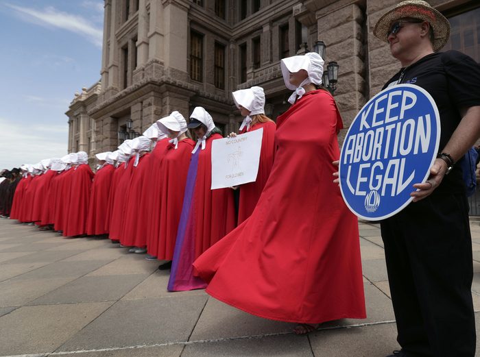 The Texas Handmaidens join a group gathered to protest abortion restrictions at the state Capitol in Austin, Texas in May 2019. Photo: Keystone